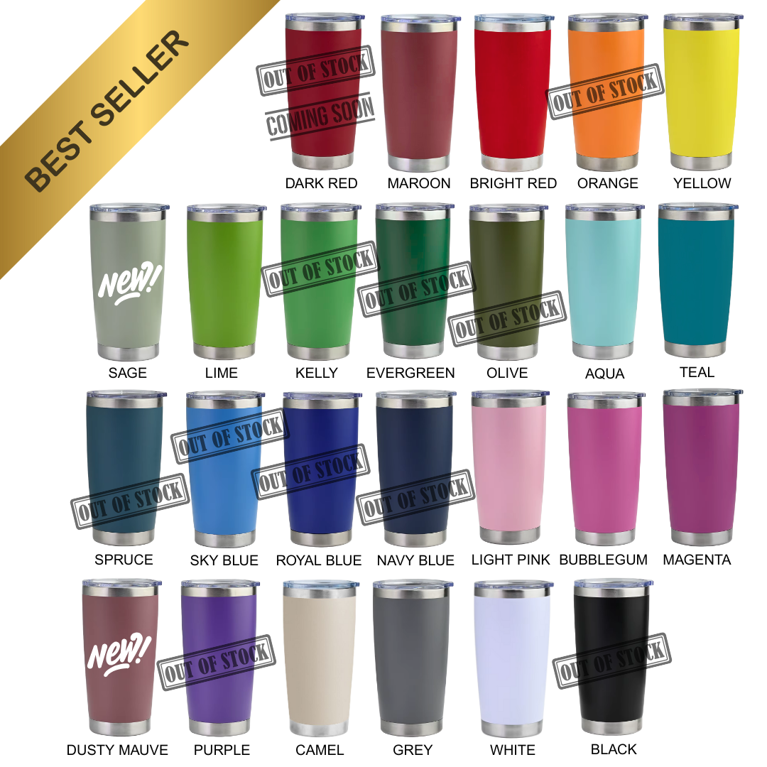 20 oz Stainless Steel Tumbler | Powder Coated | Vacuum Insulated | Laser Engraving Blank